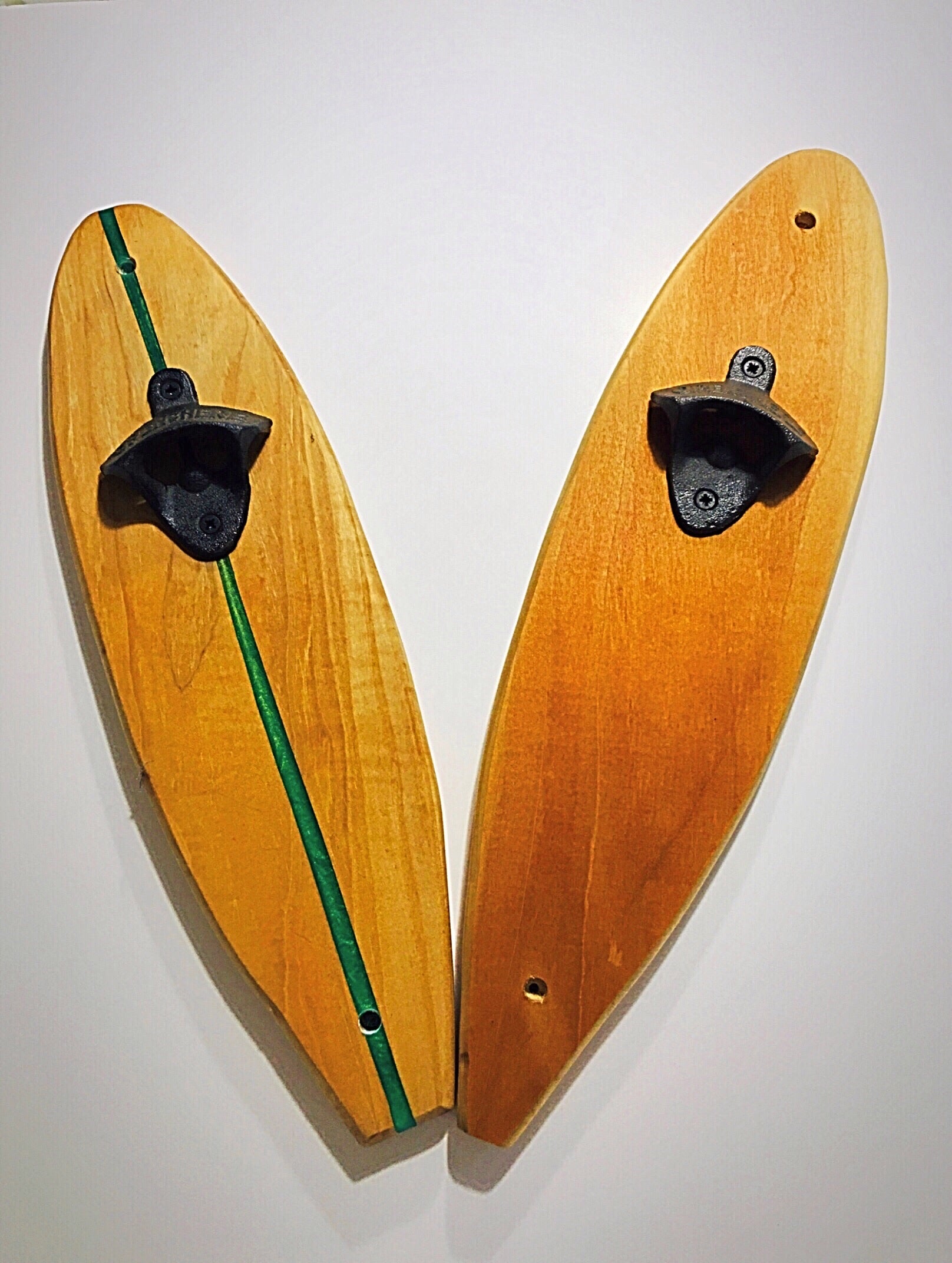 Fun surfboard shaped bottle opener ! Perfect statement piece for any wall or deck. Comes ready to mount.